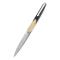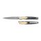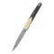 Lame acier damas : Une esthétique artisanale unique couplée à une finesse de coupe exceptionnelle.