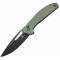 Le manche est composé de plaquettes en Manche G10 de couleur OD Green (Vert Olive), offrant une texture antidérapante pour une prise en main ferme et confortable. D'une longueur totale de 20,41 cm (11,78 cm fermé), ce couteau utilise un système de verrouillage Button Lock extrêmement intuitif, permettant de libérer la lame d'une simple pression tout en gardant les doigts hors de sa trajectoire. L'ouverture est facilitée par un Thumb Hole (trou de pouce) élégant et des roulements à billes en céramique pour une action ultra-souple.