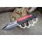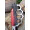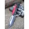 Couteau Semi Automatique Poing Américain rouge. Longueur fermé 13.33cm. Longueur de lame 9.5cm. Lame en acier inox. Lame de type tanto plein edge finition 2 tons. Platines en acier - Plaquettes du manche en abs black & red. Ouverture d'une main avec le thumb & le flipper . Fonction coupe ceintures & brise vitres. Clip de poche.