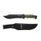 Le manche est en Manche Caoutchouc (Rubber), offrant une prise en main ergonomique et sécurisée pour minimiser la fatigue lors d'utilisations prolongées, que ce soit pour le couteau de chasse ou les travaux lourds. La construction Full Tang (pleine soie) assure une durabilité et une force maximales.