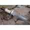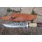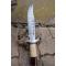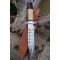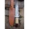 Couteau Bowie Crocodile Dundee à lame fixe - Longueur totale 34cm - Longueur de lame 21cm - Largeur de lame 3.5cm - Lame en acier damas 256 couches - Lame clip point - Garde & pommeau en nickel - Manche en bois & os - Fabrication Artisanale - Etui cuir
