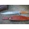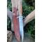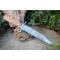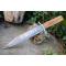 Couteau Bowie Crocodile Dundee à lame fixe - Longueur totale 38.5cm - Longueur de lame 24.5cm - Largeur de lame 3.8cm - Construction plate semelle - Lame en acier damas 256 couches - Lame clip point - Garde en nickel - Manche en bois d'olivier - Fabrication Artisanale - Etui cuir