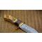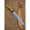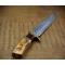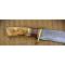 Couteau The Game Warden 256 Layers Damascus Blade Bowie Olive Wood Handle Leather Sheath à lame fixe - Longueur totale 37.14cm - Longueur de lame 23.17cm - Lame en acier damas 256 couches - Epaisseur de lame 5mm - Lame de type clip point - Garde en laiton - Manche en olivier & cuir avec insert laiton - Etui cuir avec petit affuteur