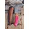 Couteau Bowie Damas Lame Acier 256 Couches Manche Bois fushia & Rosewood Etui Cuir Fab Artisanale
