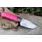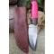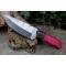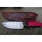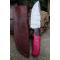 Couteau Bowie Damas Lame Acier 256 Couches Manche Bois fushia & Rosewood Etui Cuir Fab Artisanale