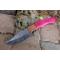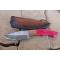 Couteau Bowie Damas Lame Acier 256 Couches Manche Bois fushia & Rosewood Etui Cuir Fab Artisanale