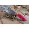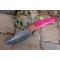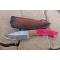Couteau Bowie Damas Lame Acier 256 Couches Manche Bois fushia & Rosewood Etui Cuir Fab Artisanale