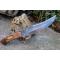 Couteau Bowie De Chasse Manche 3 Bois Lame Clip Point Acier Damas 256 Couches Etui Cuir F Artisanale
