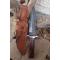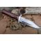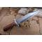 Couteau Bowie De Chasse Manche Bois Lame Acier Damas 256 Couches Etui Cuir Fabr Artisanale