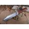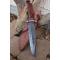 Couteau Bowie de Chasse à lame fixe - Longueur totale 31.5cm - Longueur de lame 19cm - Lame en acier damas 256 couches - Lame clip point - Garde en nickel - Manche en bois - Fabrication Artisanale - Etui cuir