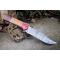 Couteau Bowie de Chasse à lame fixe - Longueur totale 30cm - Longueur de lame 18cm - Largeur de lame 3.8cm - Construction plate semelle - Lame en acier damas 256 couches - Lame clip point - Manche en bois - Trou pour dragonne - Fabrication Artisanale - Etui cuir