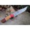 Couteau Bowie De Chasse Manche Bois Lame Clip Point Acier Damas 256 Couches Etui Cuir F Artisanale