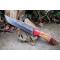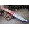 Couteau Bowie de Chasse à lame fixe - Longueur totale 30cm - Longueur de lame 18cm - Largeur de lame 3.8cm - Construction plate semelle - Lame en acier damas 256 couches - Lame clip point - Manche en bois - Trou pour dragonne - Fabrication Artisanale - Etui cuir