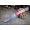 Couteau Bowie de Chasse à lame fixe - Longueur totale 30cm - Longueur de lame 18cm - Largeur de lame 3.8cm - Construction plate semelle - Lame en acier damas 256 couches - Lame clip point - Manche en bois - Trou pour dragonne - Fabrication Artisanale - Etui cuir