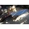 Couteau Bowie inspiré du Tops LONGHORN BOWIE à lame fixe - Longueur totale 28.5cm - Longueur de lame 16.5cm - Largeur de lame 4.5cm - Construction plate semelle - Lame en acier damas 256 couches - Lame drop point - Manche bois rosewood - Fabrication Artisanale - Etui cuir