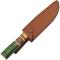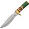 Couteau de Chasse Forest Burn Fixed Blade Bone/Wood Handle Stainless Blade Leather Sheath à lame fixe - Longueur totale 31.75cm - Longueur de lame 18.41cm - Longueur de manche 13.33cm - Lame de type clip point plain edge finition satin - Lame en acier inox - Garde & pommeau en laition - Manche en rouleaux d'os avec décor et bois green entretoise guillochée en laiton - Etui cuir