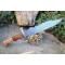 Couteau Bowie de Harold Dresseur de Dragons Manche Bois Lame Acier Damas 256 Couches Etui Cuir
