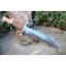 Couteau Bowie dresseur de dragons à lame fixe - Longueur totale 38cm - Longueur de lame 24.5cm - Largeur de lame 4cm - Lame en acier damas 256 couches - Lame clip point - Dos en forme de dos de dragon - Construction plate semelle - Garde en nickel - Manche en bois - Fabrication Artisanale - Etui cuir