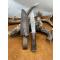 - La lame en acier damassé, aux motifs bien marqués, assure une coupe efficace et durable, tout en donnant à chaque couteau un aspect unique.