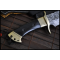 L’acier damas utilisé est constitué de plusieurs couches et a été plié avec deux types d'acier (1095 et 15N25) plusieurs fois afin d’obtenir une pièce de qualité de 150 à 250 couches.