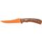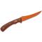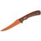 Lame trailing point en acier D2 avec revêtement céramique orange.