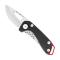 Lame drop point en acier CPM-S35VN (dureté 61 HRC) avec trou de pouce pour ouverture une main et avec système de blocage "framelock", d'une longueur de 5 cm.