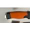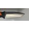 Un morceau de la soie en acier dépasse à l'extrémité du manche. Cela permet d’utiliser le couteau comme marteau improvisé.le manche mesure 12 cm, revêtu de caoutchouc ce qui offre une bonne prise de main