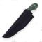 Couteau Skinner Komoran Dyed Burlwood Handle 7Cr17MoV Blade Leather Sheath à lame fixe - Longueur totale 21.59cm - Longueur de lame 8.89cm - Epaisseur de lame 2.54mm - Lame de type harpoon plain edge finition satin - Construction d'une seule pièce - Full Tang - Lame en acier 7Cr17MoV - Dureté 58 59HRC - Garde en acier - Plaquettes du manche en bois de loupe vert & marron - Trou dans le manche pour dragonne - Etui Cuir synthétic