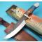 Couteau de Chasse Bushcraft Rite Edge Hunter Blue Pakkawood & Bone Handle 1055 Carbone Blade Leather Sheath à lame fixe - Longueur totale 26.67cm - Longueur de lame 15.24cm - Construction d'une seule pièce - Full Tang - Lame de type drop point plain edge finition brut de forge - Lame en acier carbone 1055 - Garde en laiton - Plaquettes du manche en bois & os - Etui Cuir