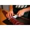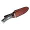 Une esthétique indiscutable, ce joli couteau est accompagné d'un bel etui en cuir avec sa pierre à affûter. Un accessoire qui vous accompagnera efficacement dans vos sorties à la chasse . Un petit bémol , entretenez bien la lame car son acier à tendance à noircir . Dommage que nos amis américains aient toujours ce goût pour les manches en matière synthétique plutôt qu'en bois de cervidés !
