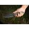 Bonne lame, coupe bien, à la volée comme en utilisation normale. Couteau léger. Le manche n'est pas désagréable le côté carré fait que les gants sont les bienvenus.