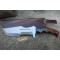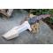 Couteau Bushcraft Trakker à lame fixe - Longueur totale 27cm - Longueur de lame 1.55cm - largeur 5cm au + large - Lame en acier carbone 1055 - Lame de type tanto trakker plain edge - Finition satin - Construction d'une seule pièce - Full tang - Manche Bois ergonomique - Mitres en résine - Etui cuir - Fabrication artisanale