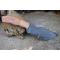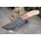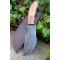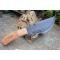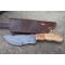 Couteau Bushcraft Trakker à lame fixe - Longueur totale 25.5cm - Longueur de lame 14.5cm - largeur 5cm au + large - Lame en acier carbone 1075 - Lame de type trakker plain edge - Finition stonewash - Construction d'une seule pièce - Full tang - Manche Bois - Mitres en bois - Etui cuir - Fabrication artisanale