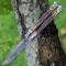 Couteau Papillon Bear & Son Butterfly Damascus Blade 128 layers Brown Stag Bone Handles pliant - Longueur ouvert 23.36cm - Longueur 12.70cm - Longueur de lame 8.89cm - Lame de type drop point plain edge - Affutage hollow - Lame en acier damas 128 couches - Mitres en nickel - Platines en acier - Plaquettes du manche en os - Système de sécurité Latch - Made In Jacksonville, Alabama, USA