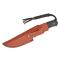 Couteau EDC CIVIVI Cloud Peak Black G10 Handle Nitro-V Satin Drop Point Blade Brown Leather Sheath à lame fixe - Longueur totale 24.16cm - Longueur de lame 11.68cm - Epaisseur de lame 4mm - Construction d'une seule pièce - Full Tang - Lame de type drop point plain edge finition satin - Affutage flat - Lame en acier Nitro-V - Dureté 59-61HRC - Garde en nickel - Plaquettes du manche en black G10 - Trou dans le manche avec scoubidou - Etui cuir marron - Poids 221grs