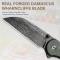Couteau EDC CIVIVI Elementum Damascus Green Wharncliffe Blade Canvas Micarta Handles IKBS Linerlock Clip pliant - Longueur ouvert 17.79cm - Longueur fermé 10.24cm - Longueur de lame 7.55cm - Epaisseur de lame 3mm - Lame de type Wharncliffe plain edge - Affutage Hollow - Lame en acier Damas - Dureté 58-60HRC - Lame montée sur pivot avec roulements à billes en céramique (Pivot Assembly: Caged Ceramic Bearings) - Platines en acier - Plaquettes du manche en green micarta - Ouverture d'une main avec le thumb & le flipper - Sécurité linerlock - Clip de poche