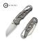 Couteau EDC CIVC23062B2 CIVIVI Pragma Gray Milled Aluminum Handles Nitro-V Satin Blade Button Lock Carabiner/Bottle Opener IKBS Clip pliant - Longueur ouvert 14,53 cm - Longueur fermé 8,94 cm - Longueur de lame 5,59 cm - Épaisseur de la lame 2.3mm - Lame de type Wharncliffe plain edge finition satin - Affûtage de la lame : flat - Dureté de la lame : 59-61HRC - Lame montée sur pivot avec roulements à billes céramiques - Plaquettes du manche en Gray aluminium - Ouverture d'une main avec le thumb - Système de sécurité button lock - Mousqueton - Ouvre bouteilles - Poids : 54,3 grr