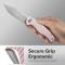 Le manche a une bonne prise en main.Je suis très satisfait de ce petit couteau.