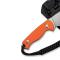 Manche ergonomique en G10 orange pour une prise en main confortable et une bonne visibilité.