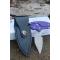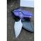 Lame de type clip point plain edge finiton Stonewash - Lame en acier 14C28N - Dureté 57-59HRC - Plaquettes du manche en aluminium Purple - Lame montée sur pivot en bronze - Etui cuir