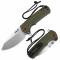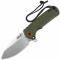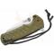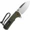 Mécanisme et Construction L'ouverture rapide se fait par ouverture flipper et est montée sur des roulements à billes en céramique pour une action ultra-douce. Le manche est doté de plaquettes en G10 Vert offrant une prise en main solide et confortable. Le couteau est équipé d'un Liner Lock robuste. De plus, il comprend une goupille de verrouillage secondaire filetée pour bloquer la lame en position ouverte ou fermée, assurant une sécurité et une fiabilité accrues.