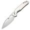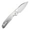 Couteau EDC CJRB Frack Gray AR-RPM9 Stonewash Drop Point Blade Steel Handles IKBS Button Lock IKBS Clip pliant - Longueur ouvert 22.09cm - Longueur fermé 12.70cm - Longueur de lame 9.90cm - Epaisseur de lame 3.20mm - Lame de type drop point plain edge Finition Stonewash - Affutage flat - Lame en acier AR-RPM9 - Dureté 59-61HRC - Lame montée sur pivot avec roulements à billes en céramique (Pivot Assembly Ceramic Ball Bearing) - Plaquettes du manche en acier finition Stonewash - Ouverture d'une main avec le thumb hole - Système de sécurité button lock - Clip de poche