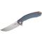 Couteau CJRB Gobi D2 Blue/Gray Trailing Point Translucent G10 Handles Backspacer Linerlock Clip pliant - Longueur ouvert 20.80cm - Longueur fermé 12.19cm - Longueur de lame 8.71cm - Epaisseur de lame 3.30mm - Lame en acier D2 - Dureté 58-60HRC - Lame de type Trailing Point plain edge finition stonewash - Lame montée sur pivot avec roulements à billes en céramique (Ceramic Ball Bearing) - Platines en acier - Plaquettes du manche en G10 couleur Blue/Gray - Trou dans le manche pour dragonne - Ouverture d'une main avec le flipper - Système de sécurité linerlock - Clip de poche