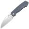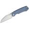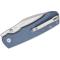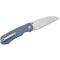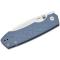 Le manche est composé de plaquettes en G10 bleu, un matériau composite léger et durable qui offre une prise en main confortable et sécurisée, ajoutant une touche de couleur distincte au couteau.