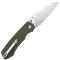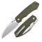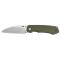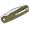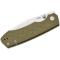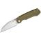 Le manche est composé de plaquettes en G10 vert, un matériau composite léger et durable qui offre une prise en main confortable et sécurisée.