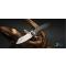 Très beau couteau aux finitions impeccables ; l'ouverture est souple et claque bien. L'angle du front flipper en fait l'un des plus rapides mais attention, en configuration tout acier, il y a de la masse et on peut vite se couper les doigts en manipulant trop vite la longue lame ;) De plus, comme il est très bien affûté sorti d'usine, c'est une véritable guillotine. Le trou de lame permet de l'ouvrir avec le pouce et encore plus facilement avec le majeur. Enfin, le button lock offre un 4e moyen de déployer la lame.