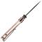 Le manche est fabriqué en cuivre, un matériau qui offre une prise en main solide et un poids substantiel, parfait pour ceux qui apprécient un couteau plus lourd. Un clip en acier est inclus pour un transport discret et pratique.
