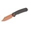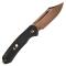 Couteau EDC CJRB Cutlery Pyrite Bowie Handles AR-RPM9 Blade Button Lock IKBS Clip pliant - Longueur ouvert 18.70cm - Longueur fermé 10.70cm - Longueur de lame 8cm - Epaisseur de lame 2.7mm - Lame de type bowie plain edge finition Rose Gold - Affutage flat - Lame en acier AR-RPM9 - Dureté 59-61HRC - Lame montée sur pivot avec roulements à billes en céramique (Pivot Mechanism: Ceramic Ball Bearing) - Manche en acier - Trou dans le manche pour dragonne - Ouverture d'une main avec le thumb - Système de sécurité button lock - Clip de poche - Poids 109.99grs