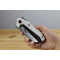 Couteau EDC CJRB Tigris White/Black AR-RPM9 Cleaver Blade G10 Handles IKBS Linerlock Clip pliant - Longueur ouvert 21.58cm - Longueur fermé 12.70cm - Longueur de lame 8.88cm - Epaisseur de lame 3.20mm - Lame en acier AR-RPM9 - Dureté 59-61HRC - Lame de type cleaver plain edge finition stonewash - Affutage flat - Lame montée sur pivot avec roulements à billes - Platines en acier - Plaquettes du manche en G10 White/Black - Ouverture d'une main avec le flipper - Système de sécurité linerlock - Clip de poche