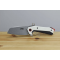 Très beau couteau aux finitions impeccables ; l'ouverture est souple et claque bien. L'angle du front flipper en fait l'un des plus rapides mais attention, en configuration tout acier, il y a de la masse et on peut vite se couper les doigts en manipulant trop vite la longue lame ;) De plus, comme il est très bien affûté sorti d'usine, c'est une véritable guillotine. Le trou de lame permet de l'ouvrir avec le pouce et encore plus facilement avec le majeur. Enfin, le button lock offre un 4e moyen de déployer la lame.